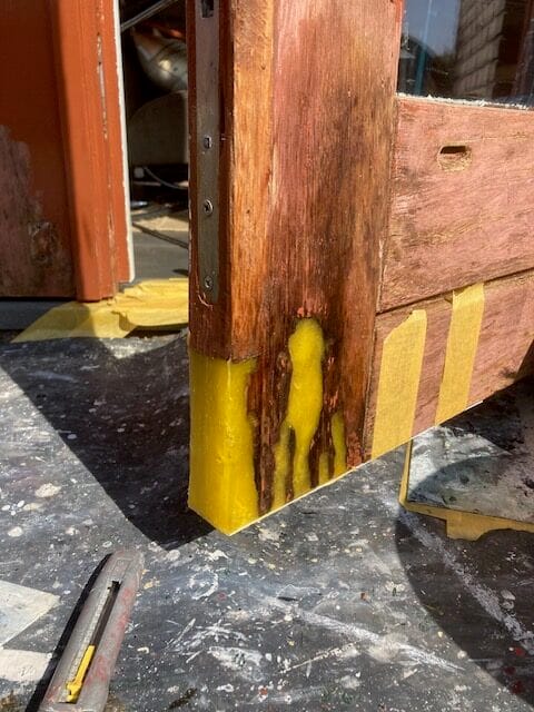 Na de aangetaste delen uitgefreesd te hebben , deze voorbehandeld met Dry Fix Uni.