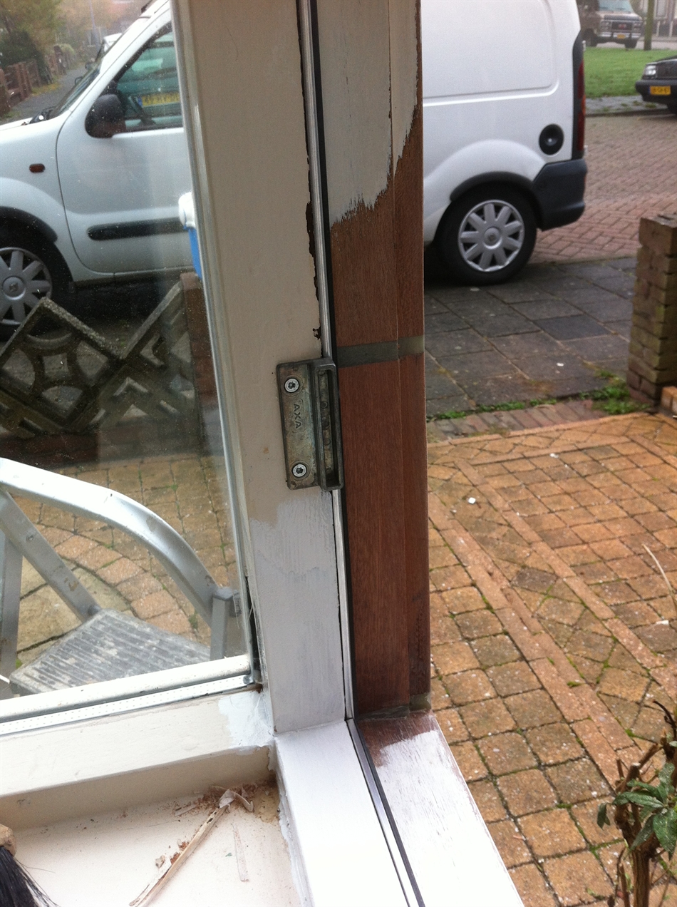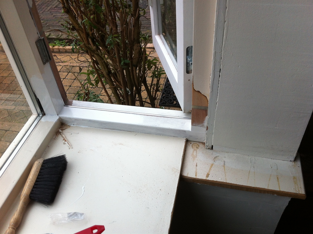 Home › Projecten › Herstel hoekstijl erker, vervanging dorpel, raam en glas.