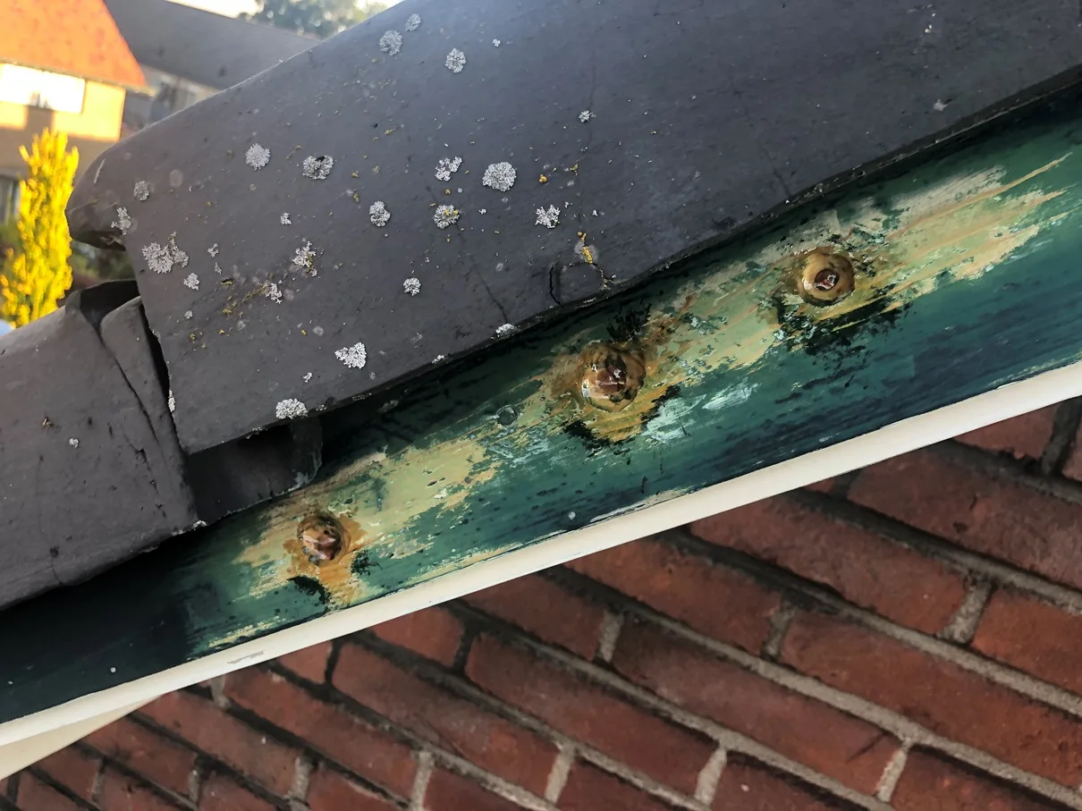Een mooi oud jaren 30 woning met veel noesten zichtbaar die problemen blijven geven. Door deze uit te frezen en te dichten is dit probleem opgelost.