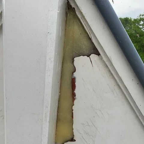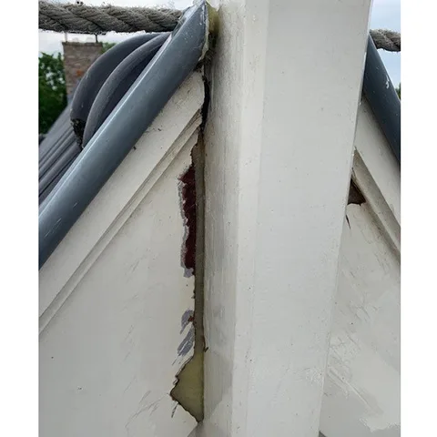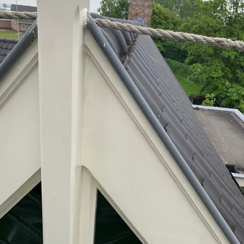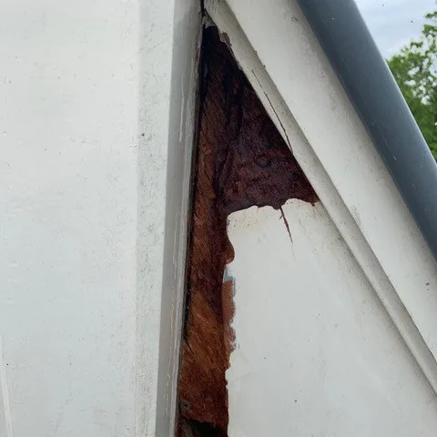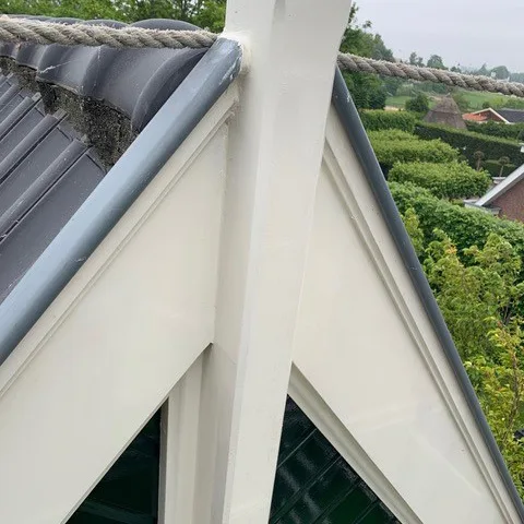 Reparatie van houtrot bij een boeilijst in Aalsmeer.