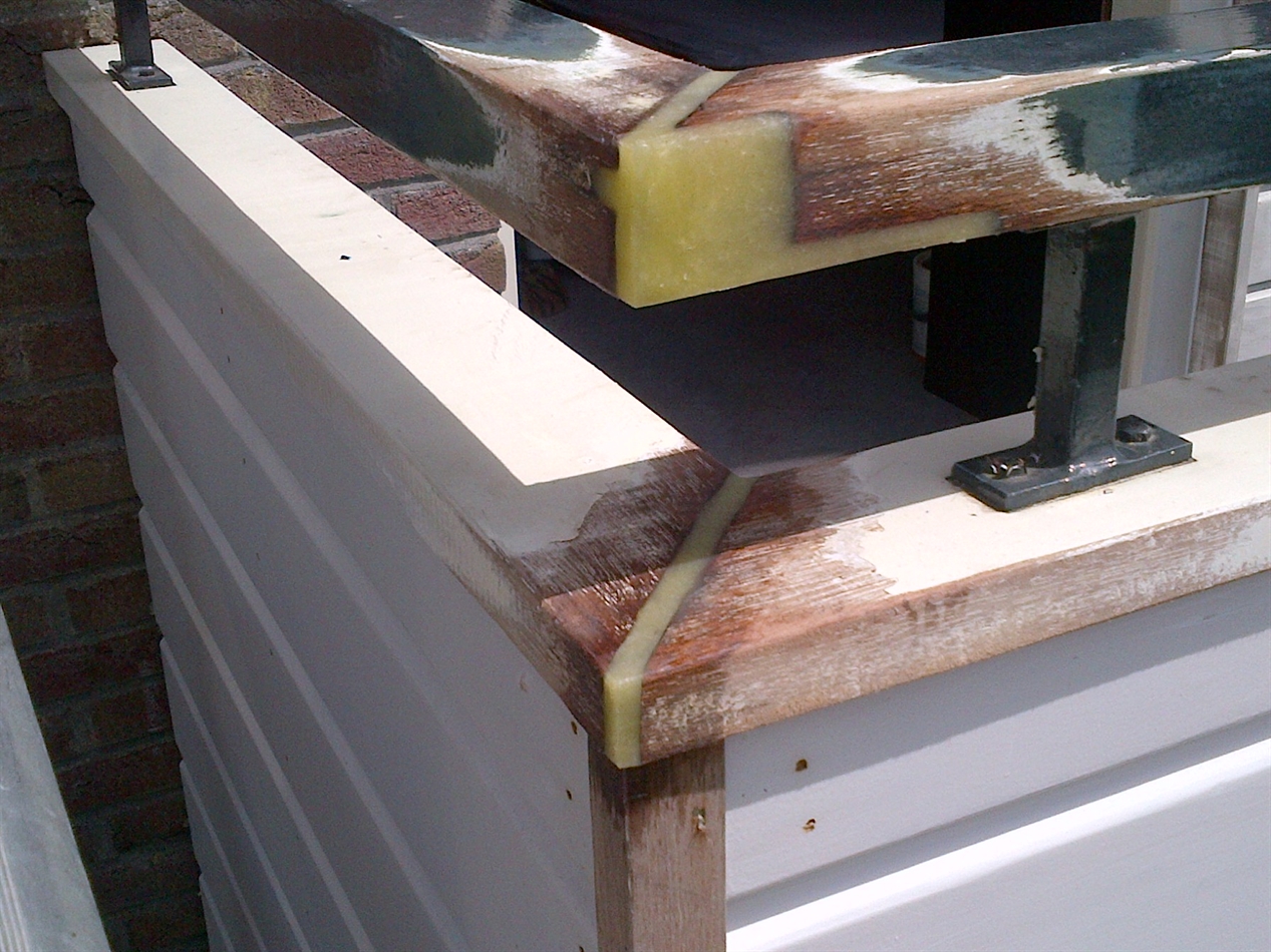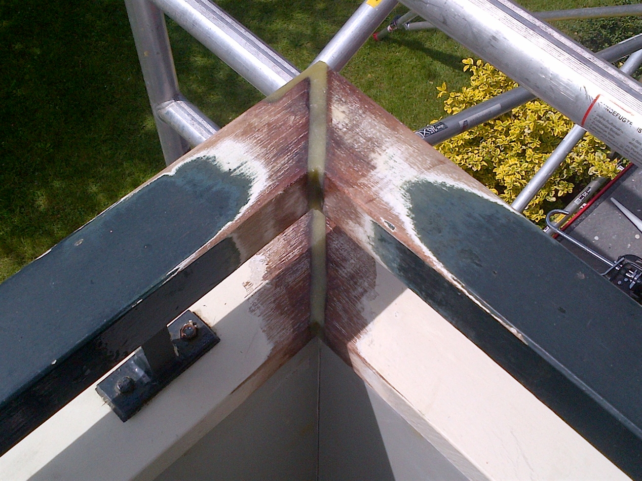 Door de aangetaste verbindingen van de leuning en de onderliggende balkonrand te herstellen, hoefden deze delen niet te worden vervangen. Dit is wat de klant in eerste instantie wel in gedachten had.