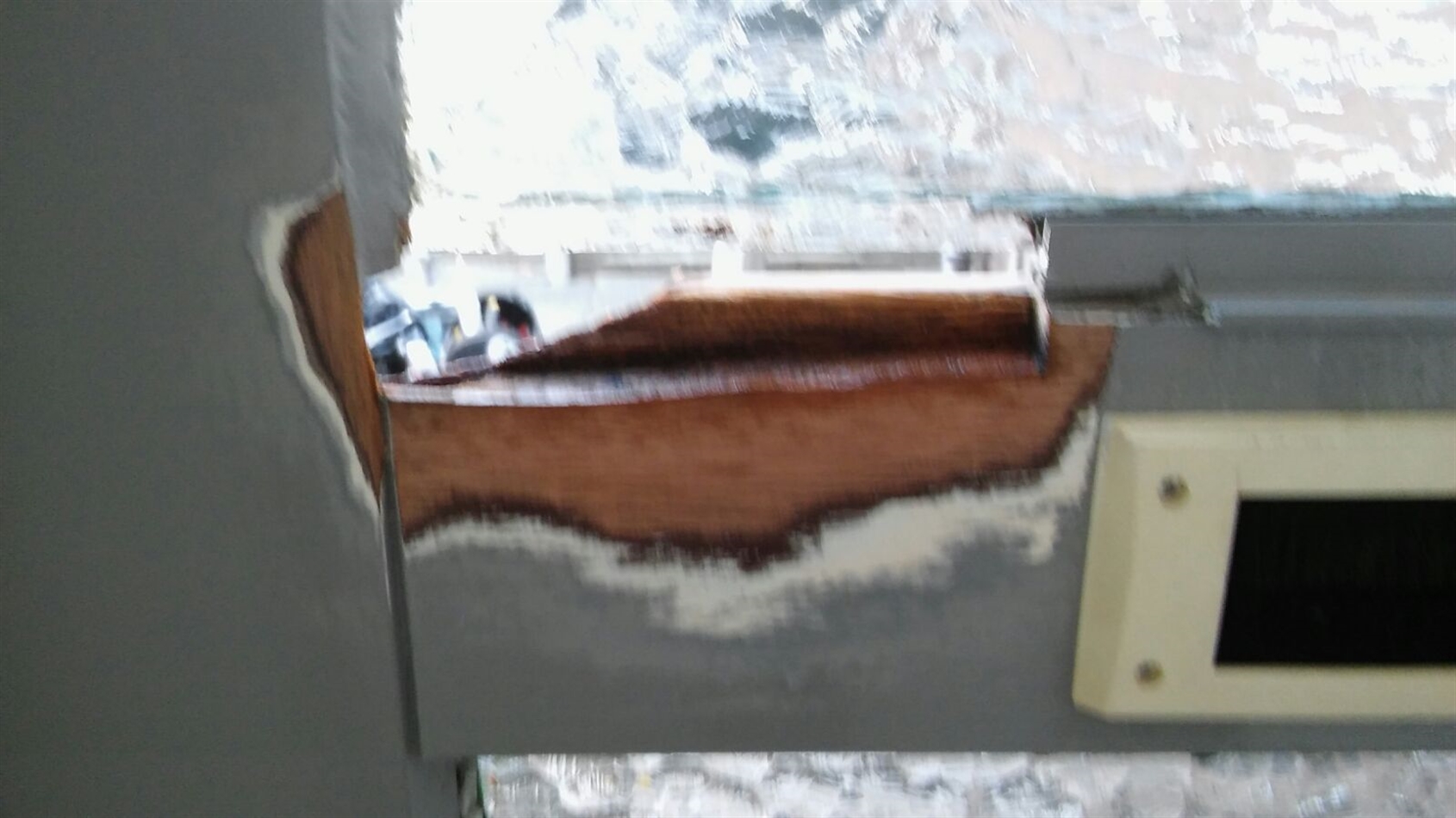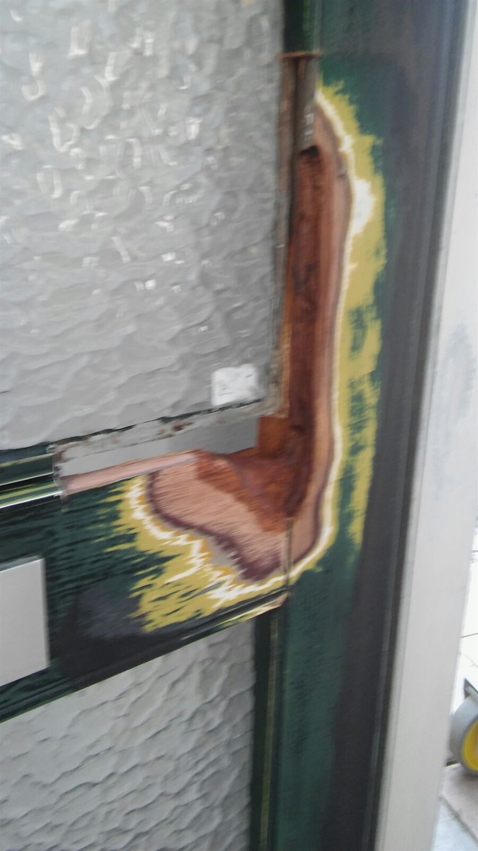 het hertstellen van een voordeur waar houtrot zowel binnen als buiten aanwezig is.